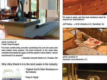 Pro-Seal has a variety of film building fine finish and penetrating wood sealers. Finish your concrete counter top professionally with Pro-Seal UltraShield IIA (US IIA) . Ask Pro-Seal  technical how.