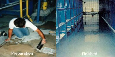 Pro-Seals PowerKote III system, incorporating Pro-Seal Power Patch, and Pro-Seal DP-36 to create acid resistant containment  and operational floors for this pickling line at a plant for a well known aircraft manufcturer.